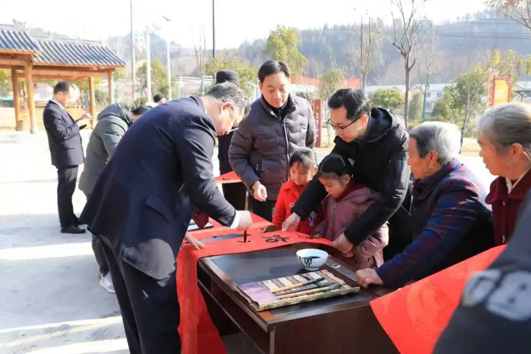自省检察院工作队驻村以来,工作队始终牢记职责使命,把群众需求放在心上,将文化振兴作为推动罗沟村乡村振兴的重要支撑。本次“万福迎春”送温暖活动,由湖北省检察院驻村工作队组织开展,郧阳区检察院联合区书法家协会,邀请书法家与检察干警共同为罗沟村村民写春联。此次活动,既是文化惠民的具体行动,更是与村民同心聚力绘就振兴蓝图的情感共鸣。