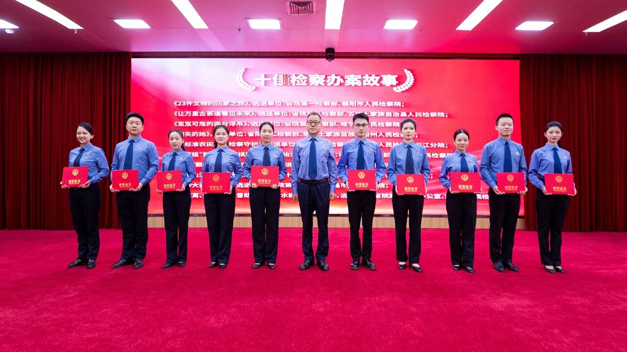 省检察院党组书记、检察长王守安为“十佳检察办案故事”颁发证书