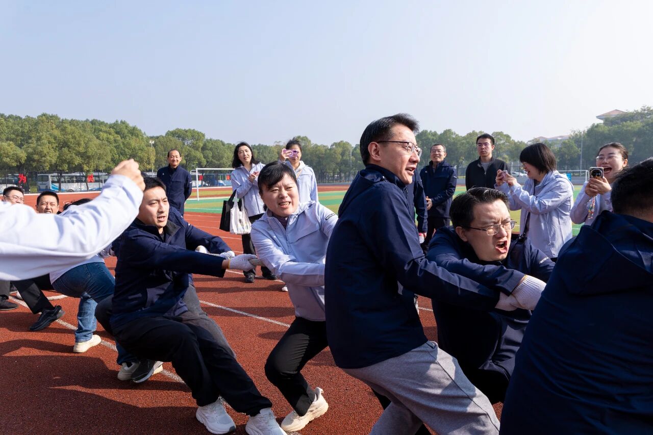 “保持队形稳定,我们就胜利啦!”“冠军一定是我们!”拔河比赛中,双方运动员除了力量对抗,言辞也毫不示弱,冠亚军之争进行得如火如荼,第三名之争也呈现胶着状态。“加油!下蹲!手捏紧!”助威的同事不仅倾注情绪能量,更是积极提供技术指导。