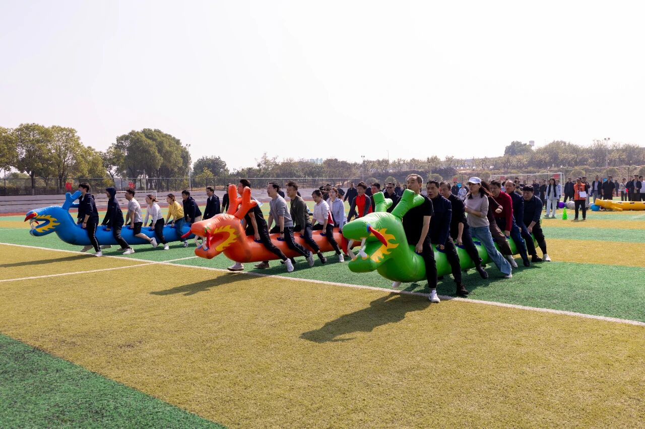 众志成城齐向前,携手并肩共争先。陆地龙舟和夹瑜伽球接力项目吸引了所有人的目光,“一二一,左右左!”大家响着整齐的口号往前冲。