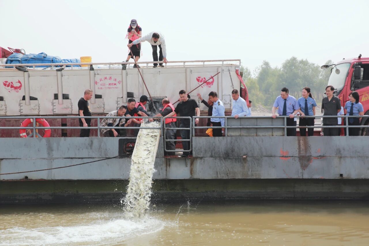 2024年10月10日,江汉区检察院与该区法院、长江航运公安局武汉分局、赤壁市农业农村局联合开展增殖放流活动,3万尾胭脂鱼放归长江。