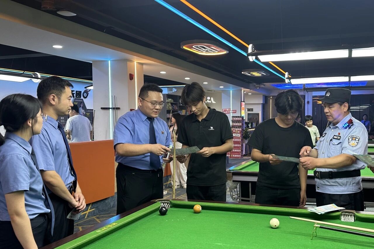2025年6月,襄阳市襄州区检察院干警联合区治安大队走进辖区多家台球室、电竞酒店和网吧开展普法宣传。