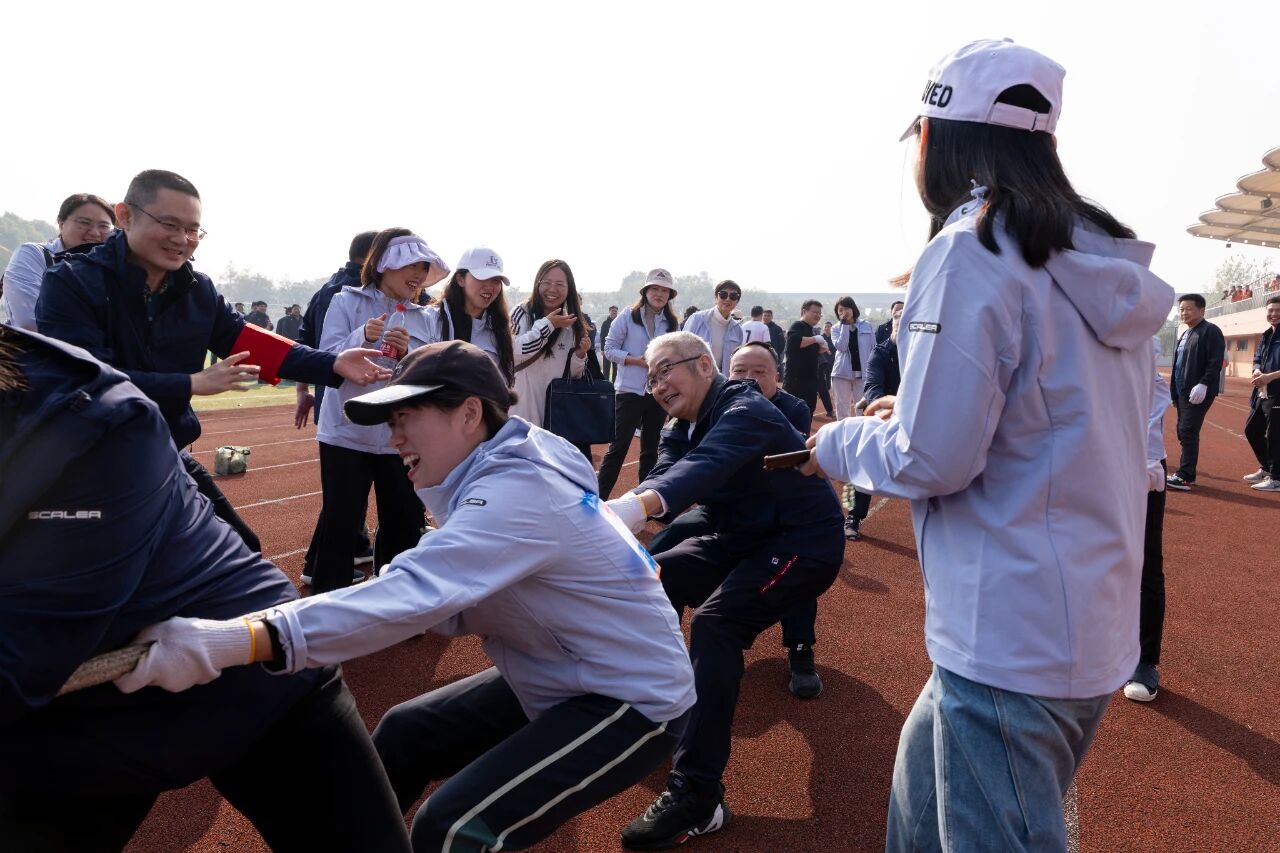 “保持队形稳定,我们就胜利啦!”“冠军一定是我们!”拔河比赛中,双方运动员除了力量对抗,言辞也毫不示弱,冠亚军之争进行得如火如荼,第三名之争也呈现胶着状态。“加油!下蹲!手捏紧!”助威的同事不仅倾注情绪能量,更是积极提供技术指导。