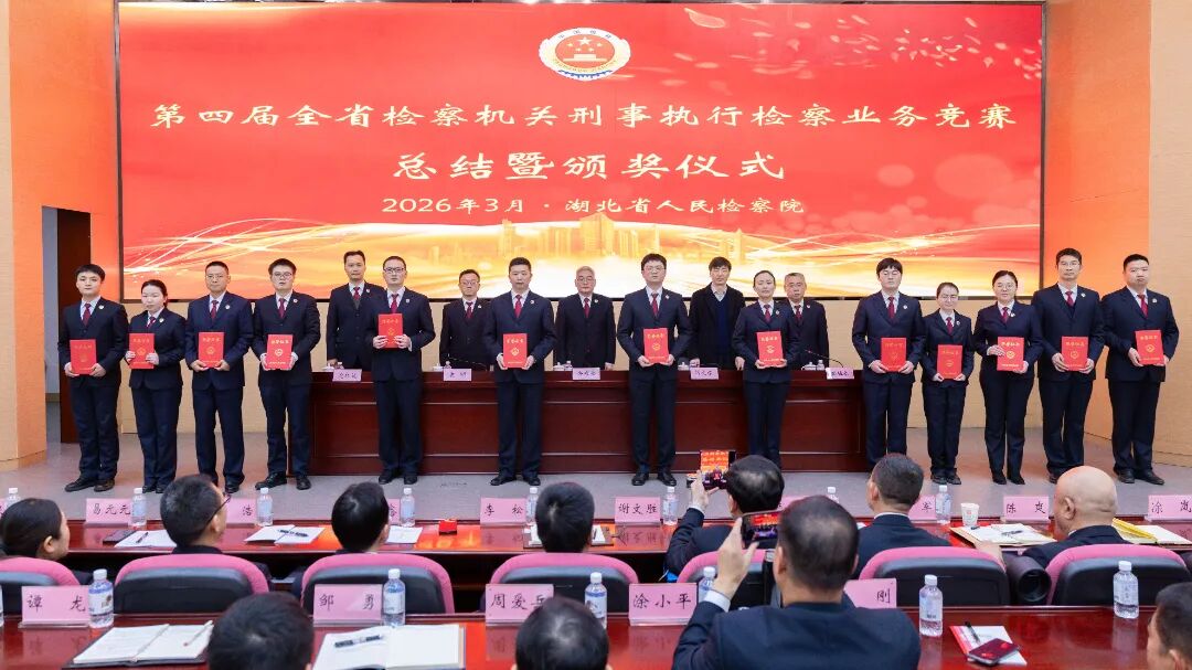 图为湖北省检察院政治部副主任刘文孝为获得“全省刑事执行检察业务能手”称号的参赛选手颁奖。